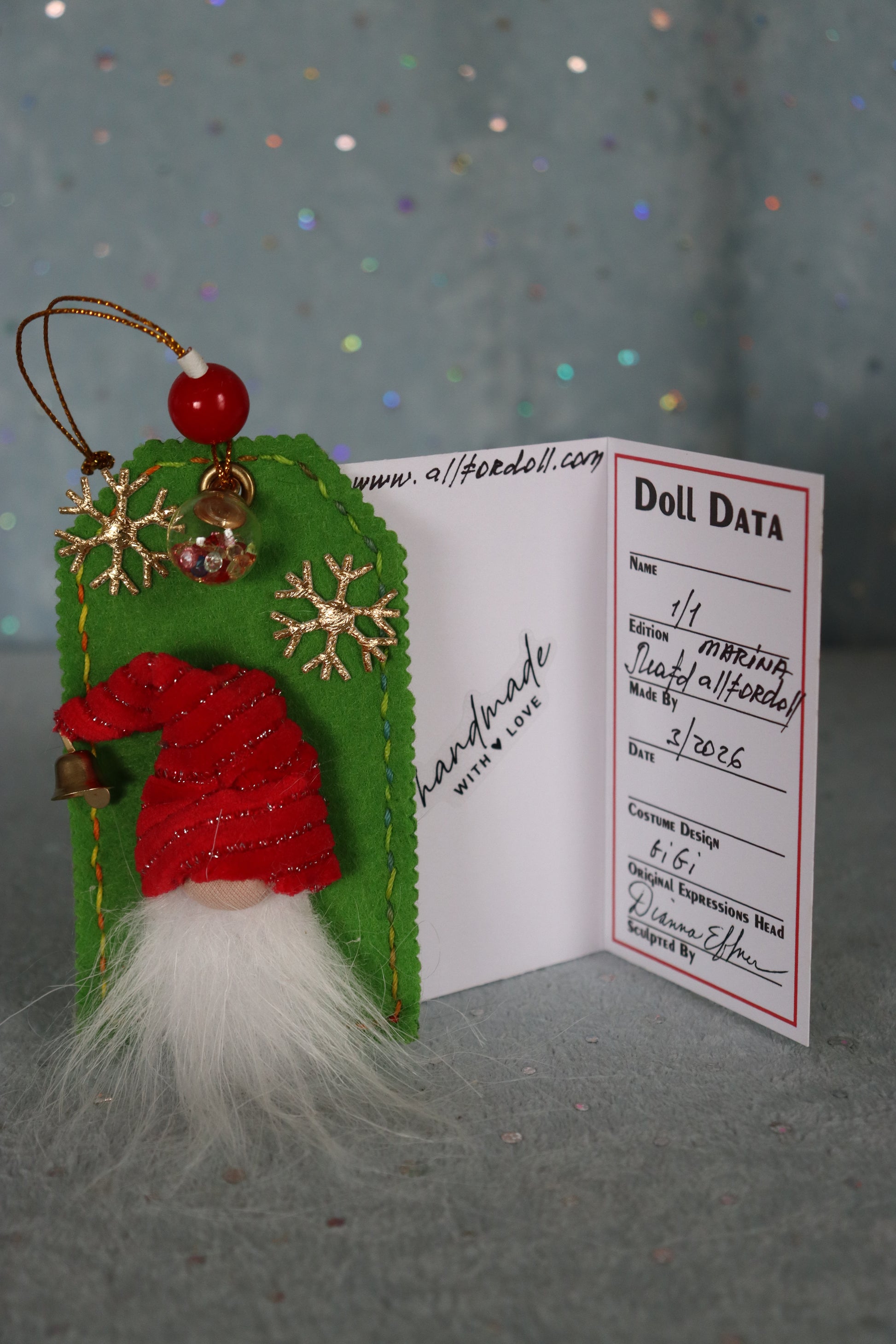 She measures approximately 14 inches tall and is made of all porcelain with five points of articulation. The doll is brand new, created in March 2026. She does not have a specific name, so you are welcome to choose any name you like and write it on the top line of the Certificate of Authenticity (COA). The doll is dressed in a charming outfit. She comes exactly as pictured with COA, a mini ornament but without a stand.