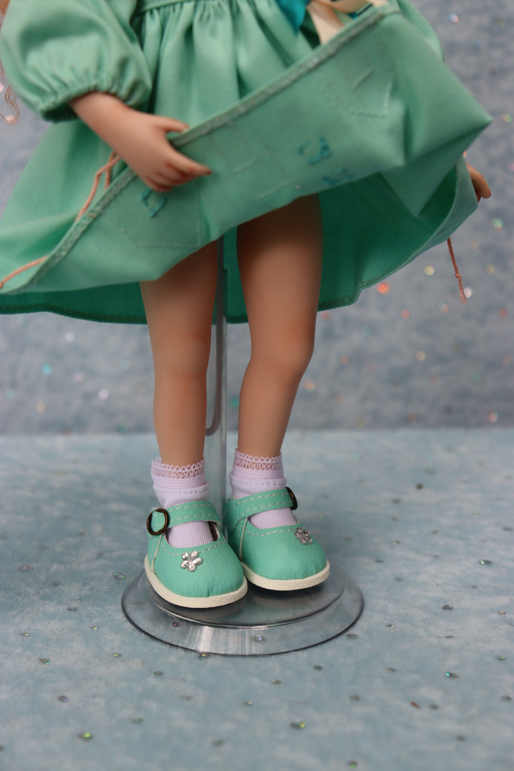 This doll measures approximately 10-11". She has wonderful "China fire" painted eyes and she is all porcelain with 5 points of articulation. Her gorgeous outfit was custom-made and it is removable if you would like to change it in the future. The doll comes as pictured (no stand). Should you have any questions please ask before bidding and I will respond as quickly as I can.