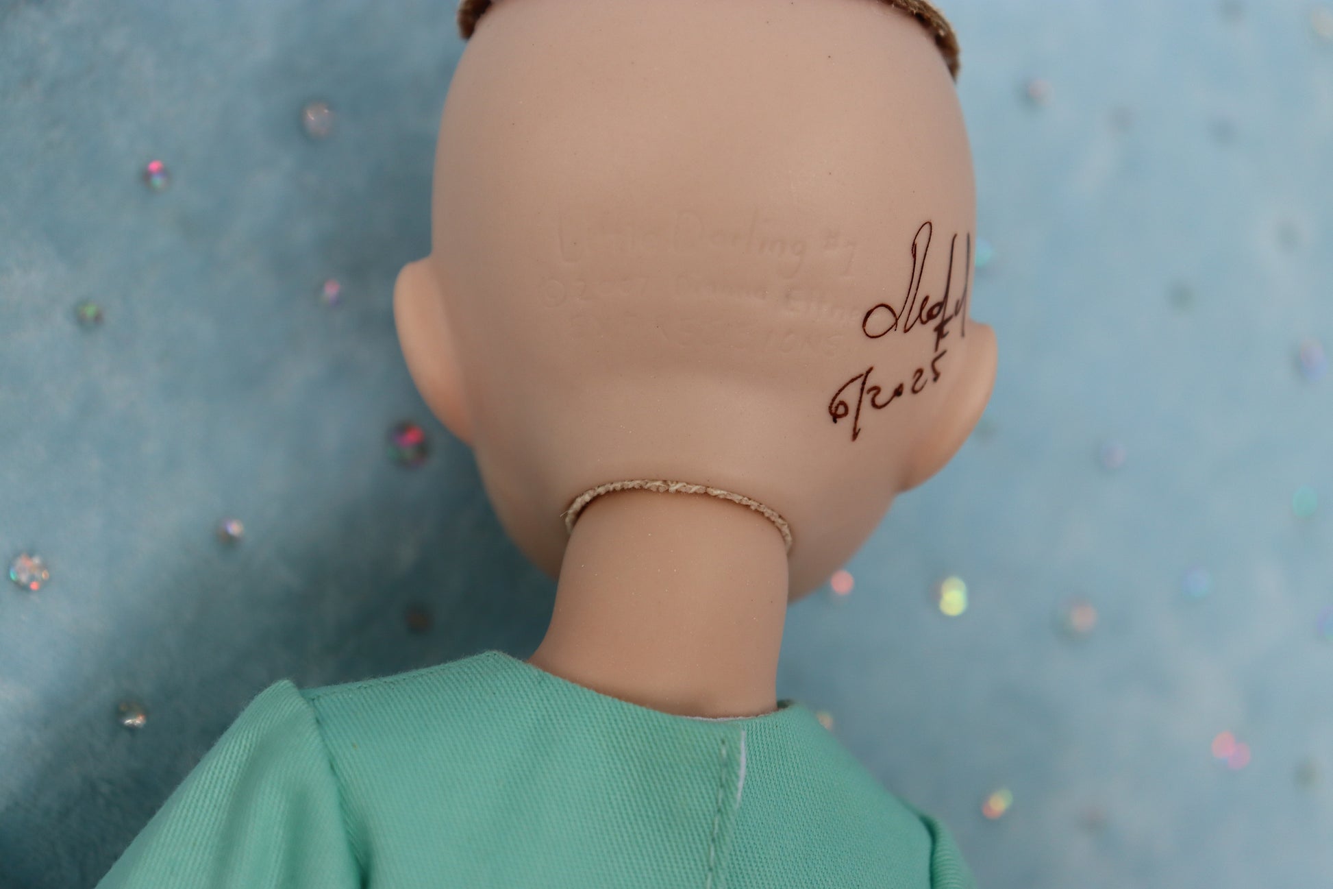 This collectible doll poured from the mold "Little Darling #1" - the original sculpt is by renowned doll artist Dianna Effner. The doll handcrafted to be a One Of A Kind (OOAK) doll by artist "Mafd&Co".