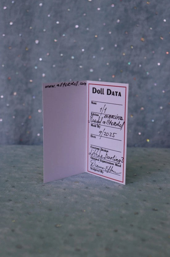 This collectible doll is a one-of-a-kind (OOAK) creation made from the famous "Little Darling #3" mold — the original sculpt by renowned doll artist Dianna Effner. The doll is entirely handmade by artist Marina-AllforDoll, using "Delicate Rose" color porcelain slip, with meticulous hand-cleaning and kiln firing. The eyes are painted using special kiln-fired China paints. The doll comes with the artisan's personal signature and the date of creation.